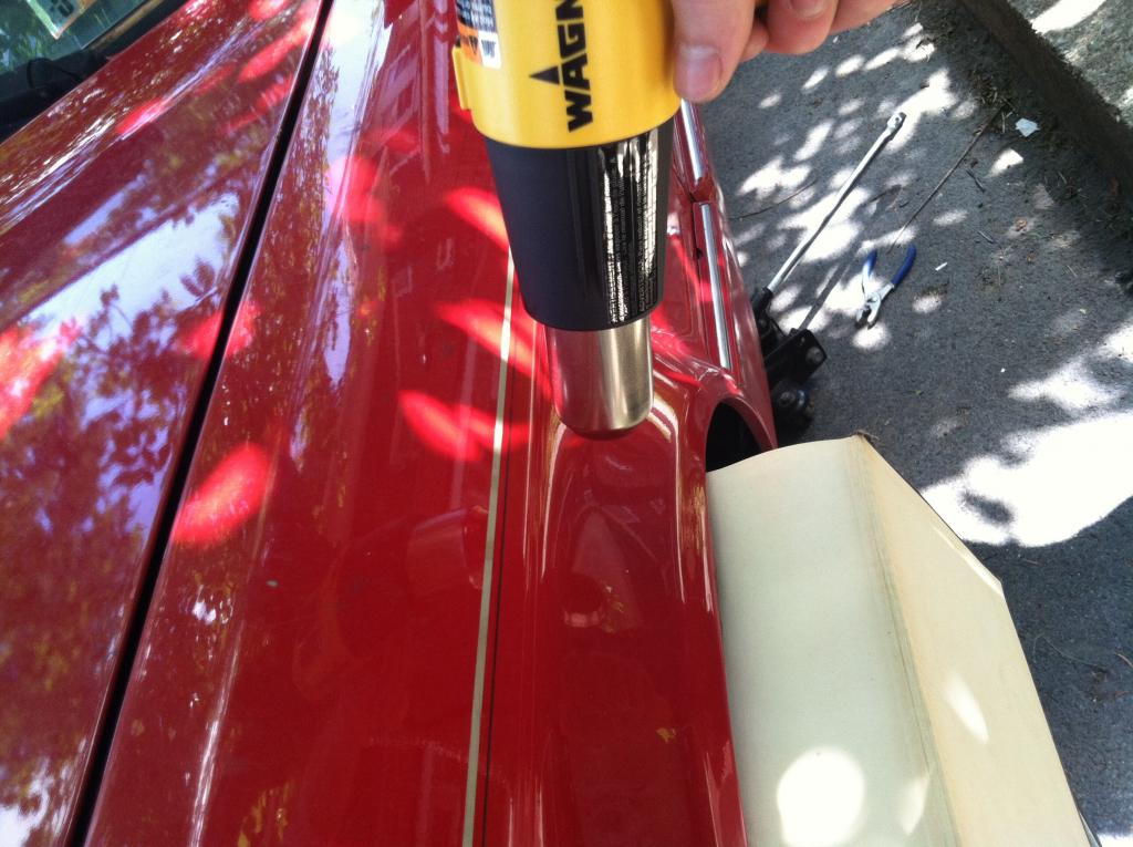 Once you have all your tools in place jack your car up. Start heating up your fender, make sure to move the heat gun around not heating up one spot too much. You want to have an even heat all around.