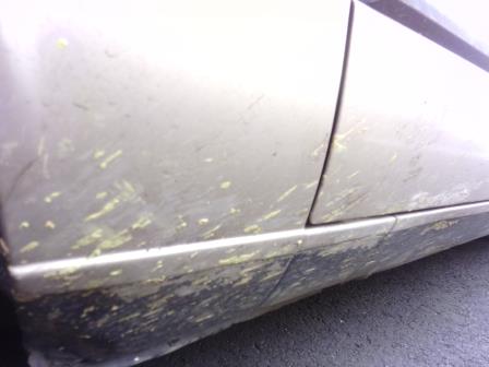 My car is in the wars atm, It currently has a smashed window (someone broke into it), and I drove through House paint on the road.