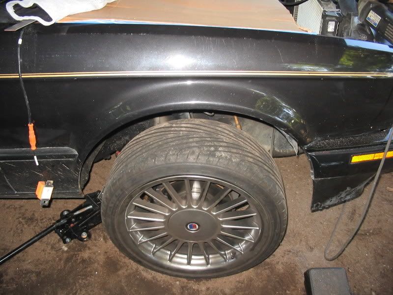 while its jacked up i used the weight of the wheel to flex it back to norm as good as possible While i cut on it. But now its time to take it off!