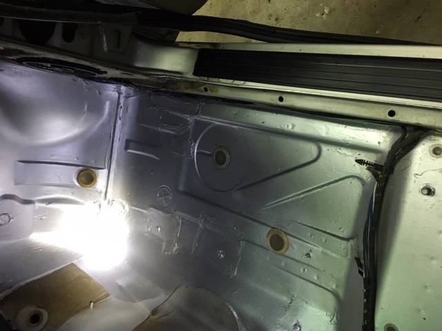 Additionally, there is a spot of rust on the passenger side of the transmission tunnel about the size of a quarter. I punched it through and it looks like there are two sheets of metal there. How can I patch this without dropping the trans?