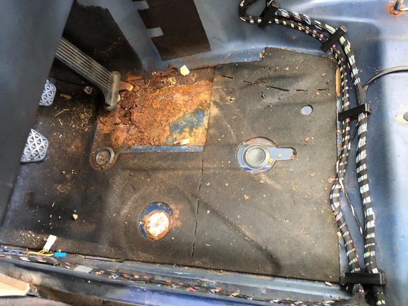 My floor panels up front are all rusted out. I believe I found the cause for the passenger side, a drain plug was missing allowing water soak the carpets while driving in the rain, the rocker drain was blocked up with about a liter of water, and the "elephant drain" was plugged. However, on the driver side only a square section is rusted right underneath the pedals. Any idea what would cause this rust? In the attached picture, I have since removed all that sound deadening crap. It is only rusted in that area on the picture. Thanks for the help!