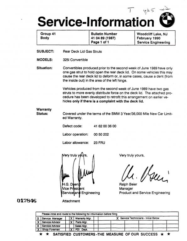 For those of us with the uneven trunk lids due to the early single strut, model years 1987 & 1988. I have completed my upgrade to the later two strut style and am happy to report it was simple and works fine.