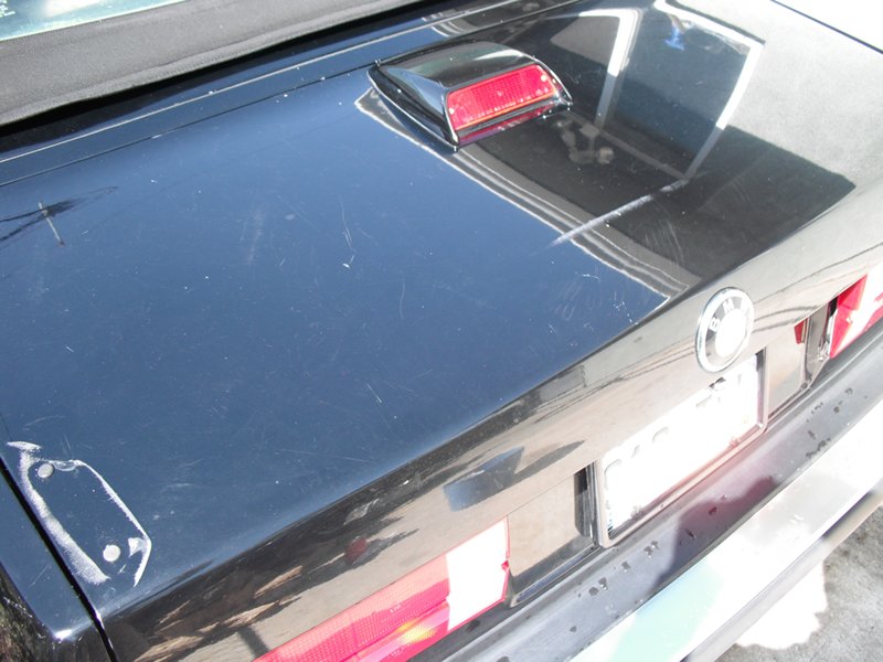 I bought my first E30 a while back and It had a bit of a hard life with it's previous owner. At some point it had a spoiler, but it is long gone now. The only thing remaining are 4 holes and some footprints. Can anybody tell by looking at the photos, what spoiler was on it. There is a footprint at either side, as well as a rub mark in the center of the trunk.