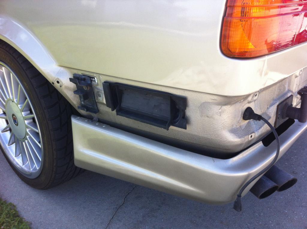 Yeah I'm sorry, I had a really rushed reply earlier. That's an aftermarket rear valance, and your rear should look just like evandeel posted. A mod that people like to do (well not really cuz it's a PITA) is cut off a late model e30 valence (shown below) and weld it onto an early model. That would be what I was referring to as a "stock valance". Your car didn't really come with a valance, and if you have no desire to put one one, your best bet would be to fill in the holes like you plan on doing and treat them with rust preventive coating before painting. If you plan to re mount this valance, try to find out what company it is and go from there to find out the proper way to make it fit.