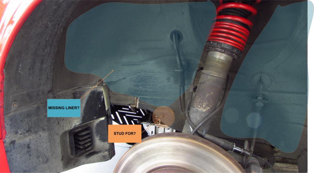 Does anyone know if there is suppose to be a fender liner around the shock/spring area? I see a stud for a bolt.. I am unsure if I am missing a inboard fender liner..