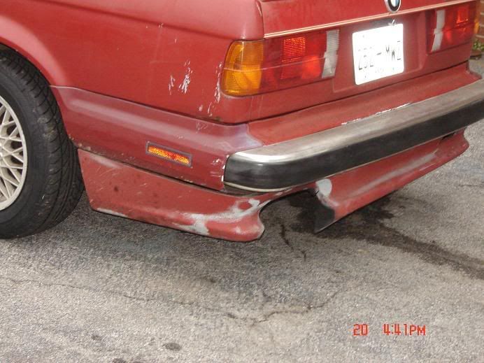 Bad paint, DIY smoked headlights, 15" Fondmetals with clearcoat pealed, plastic front conversion, missing lip, fog lights and brake ducts, chrome bumper on back, and no spare time to install front springs.