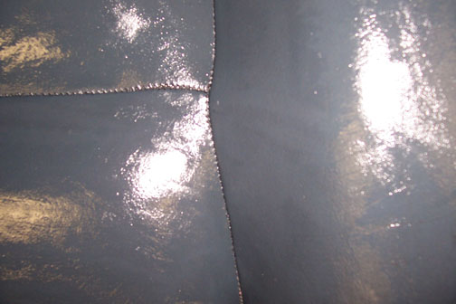 The leather is a little softer, but things still look shrunken up. Check out the seams where the knee bolster meets the butt area and center bolster: