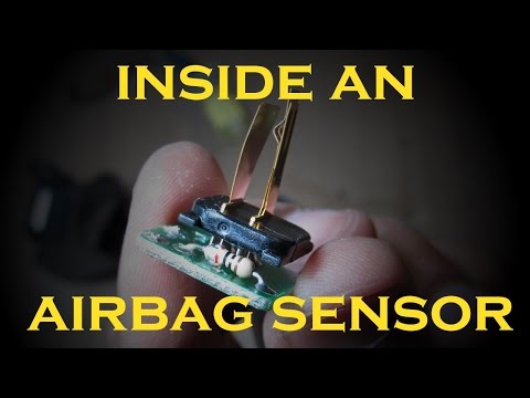It seems a sensor has copper terminals and a pendulum that makes them contact during an impact.