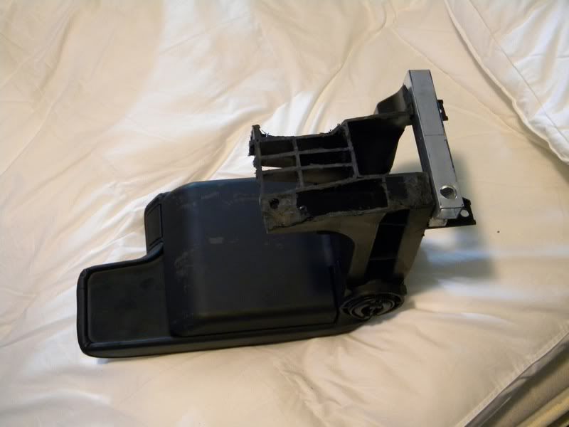 1. Chop off about .5 in from the front of the E46 console to clear the emergency brake