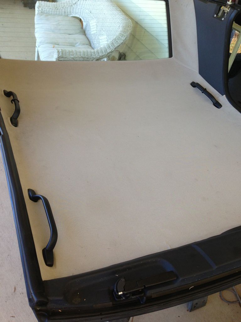 I just did a re glue on my top and it turned out surprisingly well...so far. I left it attached around the window and just folded it back to prep everything which pretty much involved taking a stiff brush to remove all the dead foam then vacuuming. I used 3 coats Permatex HD Headliner Glue & just worked carefully from center to edges. At least it wont be sitting on my head.