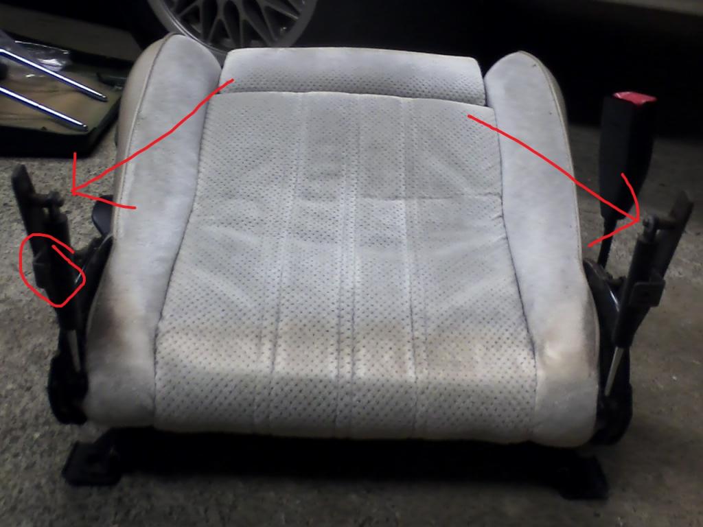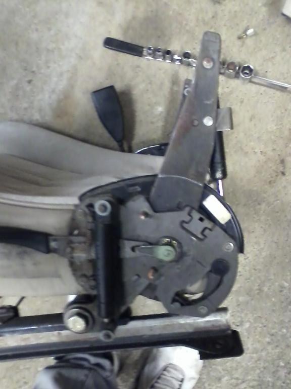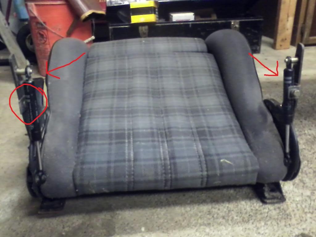 The seat had a problem with the back. It would slant to one side, and the slanted side would be shaky, and wouldn't lower or raise properly. I figured it might be something that has slipped out of place or that something was loose. But it turns out that the arm thing that supports the back is slanted back. Not only that, but the little metal part that the back screws into has snapped off! Anyway, I saw the crooked back arms and figured the other one might have straight ones, so I could compare. HOWEVER.. the other seat has the EXACT same problem! :cockbloc: Even the same metal attachment thingy is broken! I played around with it for a little while, but I couldn't get the arm to come off (safely), or more/realign.