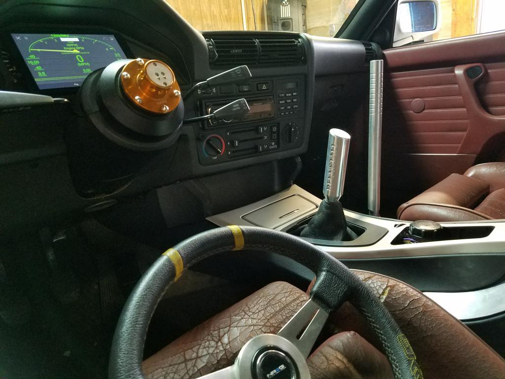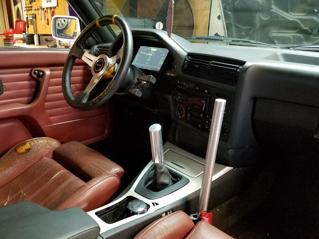 Also you'll notice the shift boot is not complete. I have to rework the boot with new material. The old boot would not play nice. I had to cut up the stock auto surround, but it came out ok. Will look much nicer this weekend when the boot is finished