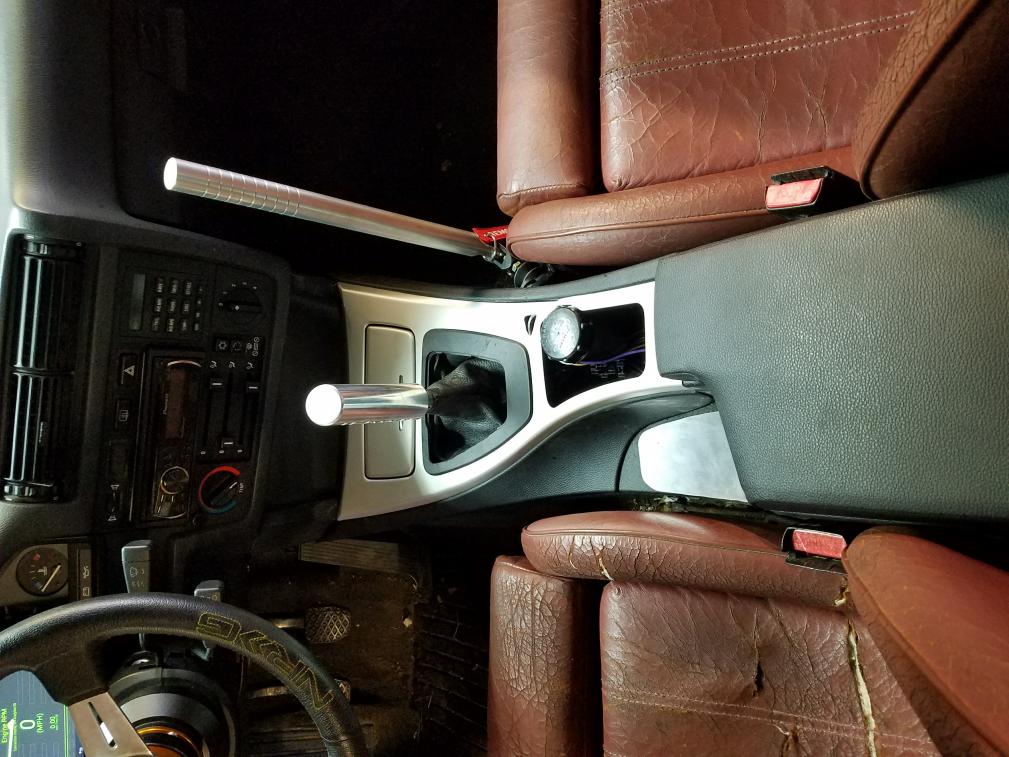 I made an aluminum plate to cover up the ebrake boot that is not being used. I will possibly mount additional switches to it in the future, but for now its just a cover.