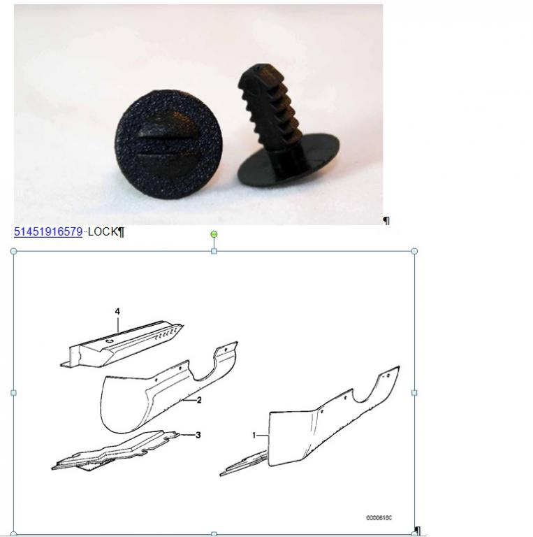 Anyone with an airbag E30 - what holds your lower driver side dash trim (piece #2 in the attached picture) in place? Pre airbag cars have a lock screw which is a flat on one side and then is rotated 90 degrees to lock the panel in place. The part number is 51451916579 and is shown on the attachment. This does not work for airbag cars as this part does not fit through the panel.