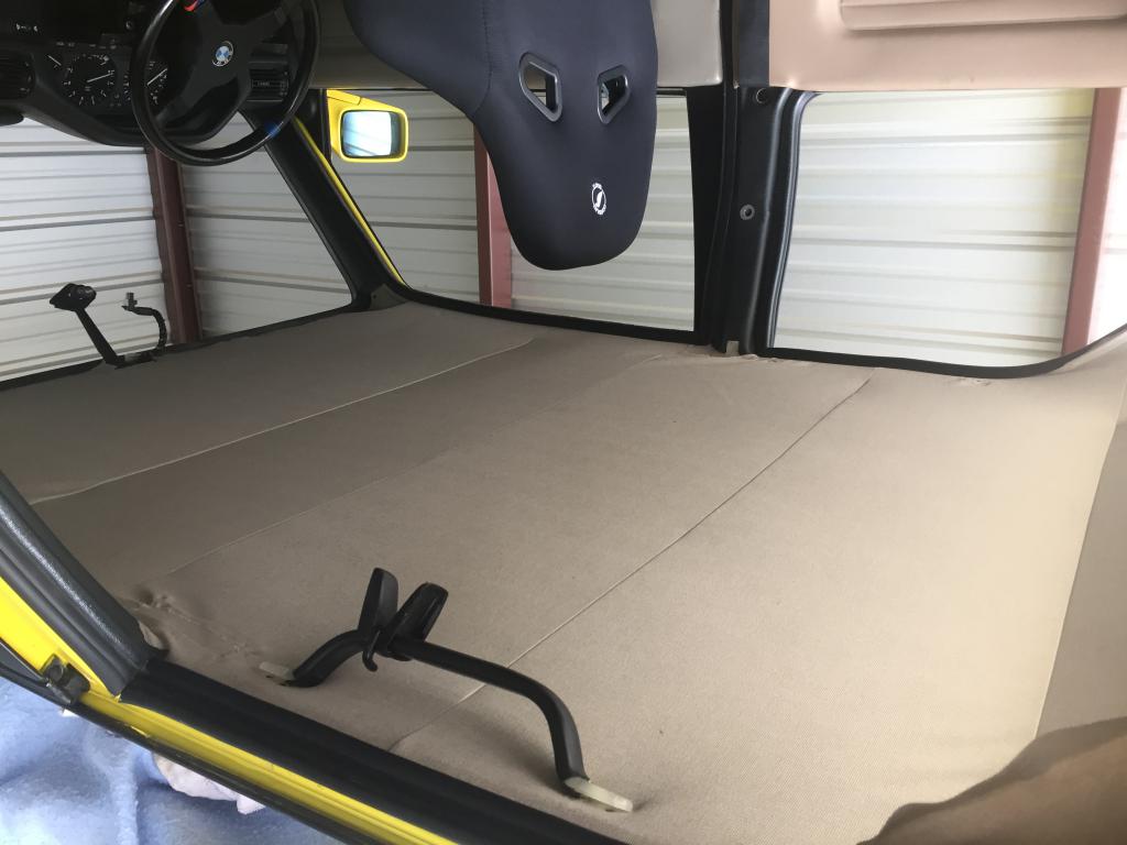 So I've had a a carbon fiber sunroof panel in place of my original sunroof that fell apart. I final got around to installing a coupe headliner in without removing my sunroof gutter. I fabricated some brackets to hold the headliner rods in places, since the sunroof model doesn't have them in the same spot that a coupe model would.