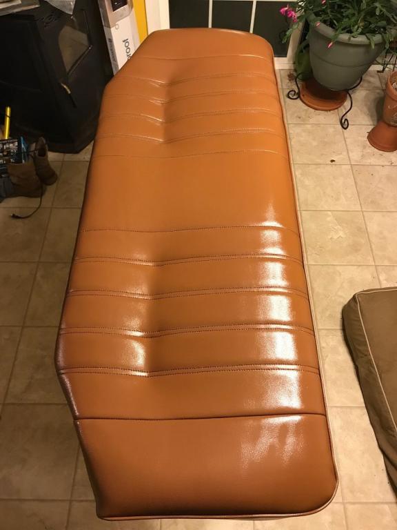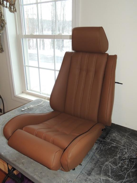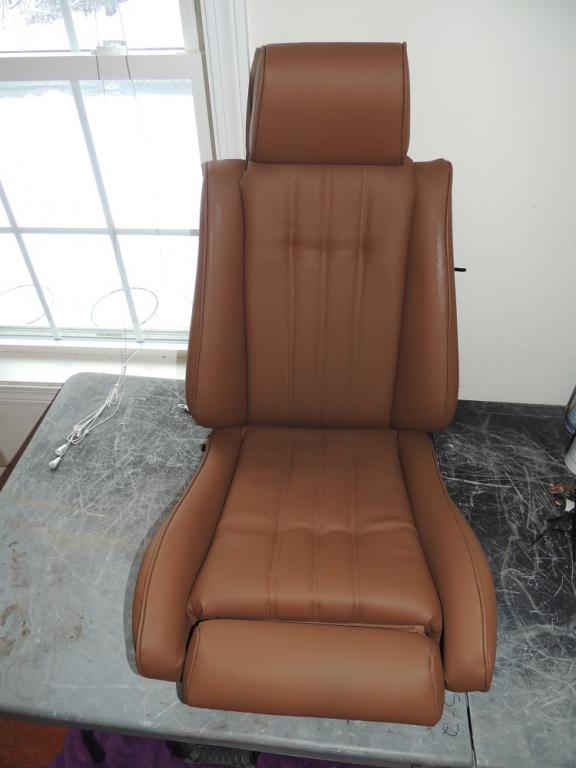 The driver's seat is all covered. For never having done upholstery work before I am very happy with the way they turned out. I still have to put the top and back together but, I cleaned and painted the rails and need to let them dry first.