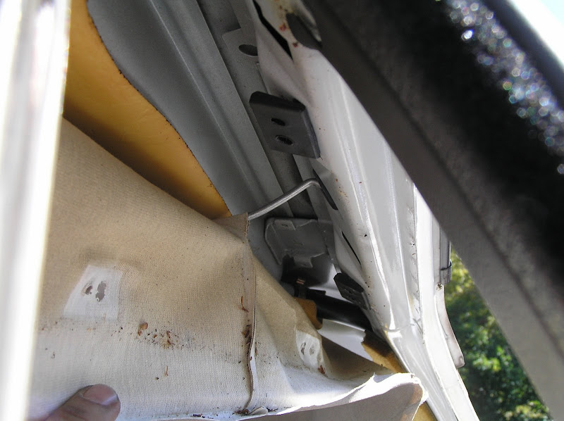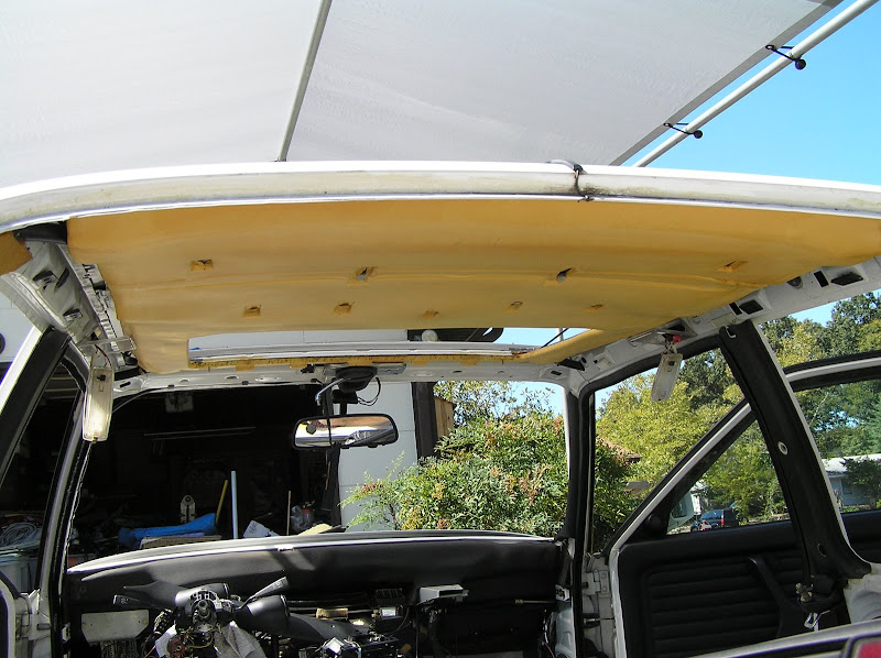 Also, it is not like common headliners that are attached to a piece of board, it is the older types that have rods to hold it up, so although glue will help, it may seep through.