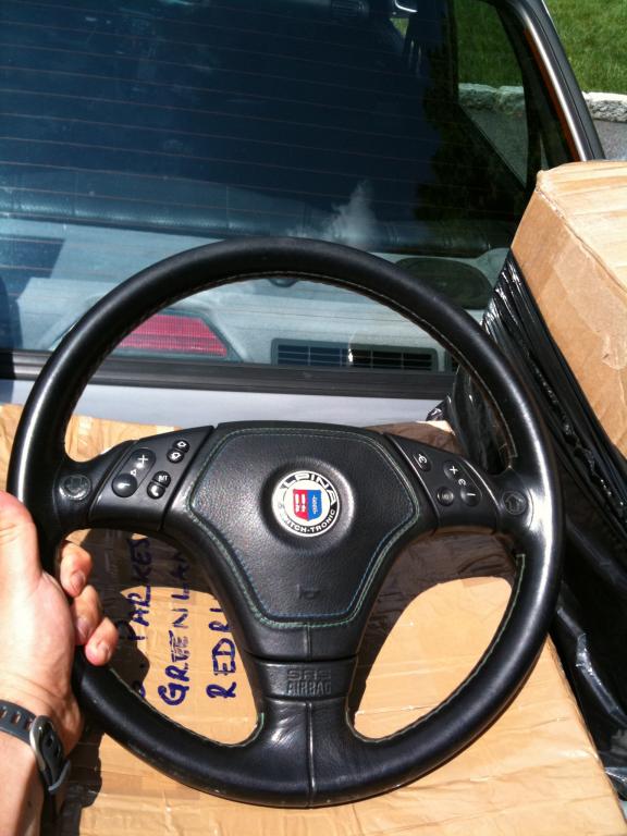 Had bought this for the 540 touring but went with the e46 m3 paddle shifter wheel instead. Pretty cool piece, check out the arrows at 3 and 9 oclock, you can wire to shift the auto trans.