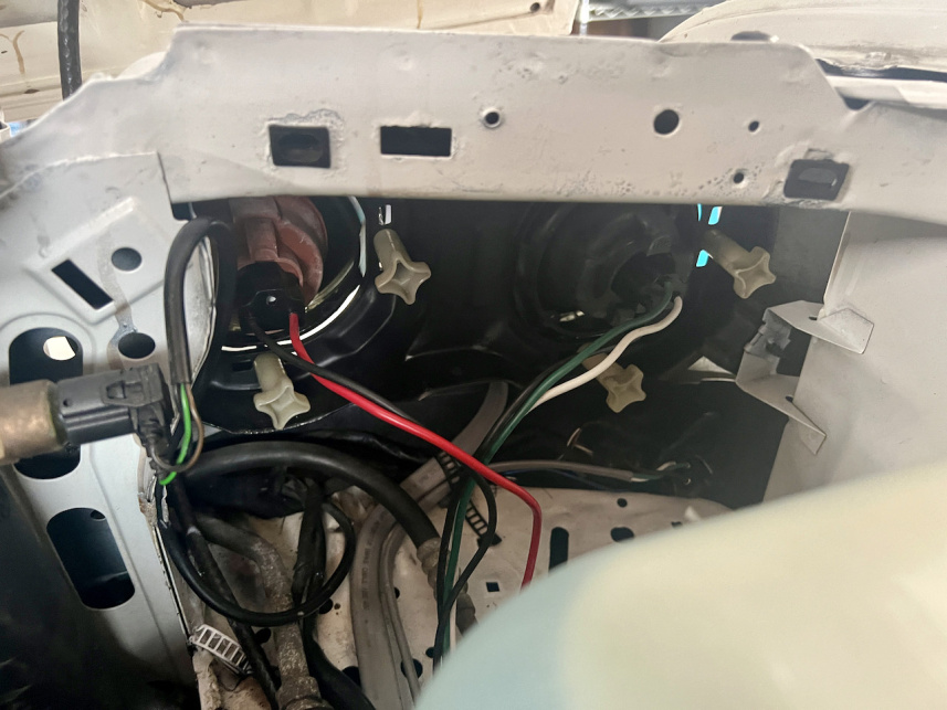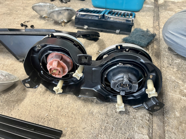 You'll want to remove the frames to make it easier to route the wires between the left and right sides. I took the opportunity to do a little rust mitigation on the buckets and frames, since I was in there. If you're not disassembling completely, the old units are just held in place by the bezels.
