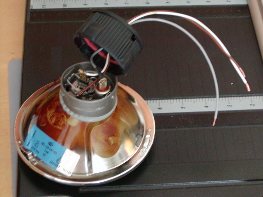 Anyway, the light includes a cap with two wires, brown and white for ground and power. They take an H1 lamp.