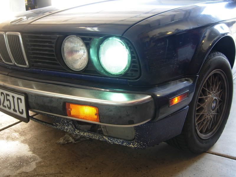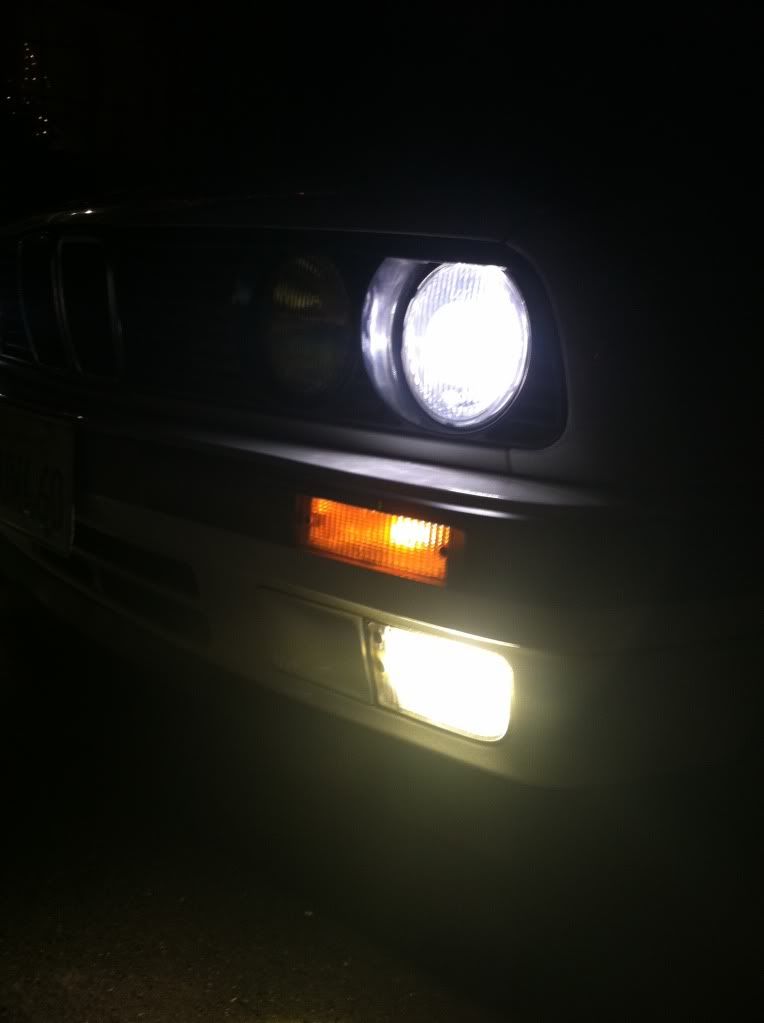 APexcone/DDM 4500K bulb on left, Osram H1 Halogen on right. Bosch Euro ellipsoid lights (non-smiley).