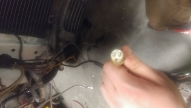 B ​ Left side Some hacked up wire with 2 endings one has some sort of bracket looking thing other is just a wire