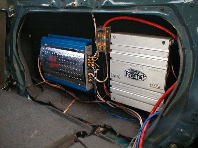 in the boot(trunk)bass box with 2x inphase xt12 12"ins subs ..1400watts each
