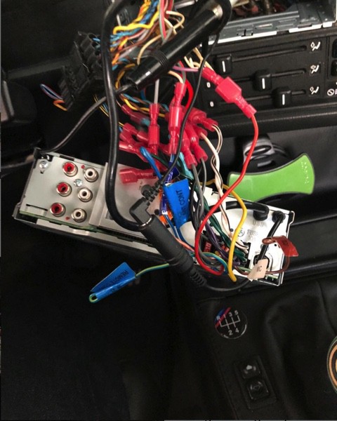 As a novice E30 archeologist, I'm guessing that one of the PO's replaced the stock head unit, pulled the stock amp and bypassed the stock wiring with an aftermarket amp and new stereo wire. I guess they were using a 3 channel amp, maybe. But then a more recent owner pulled the aftermarket amp and reused the stock wiring. This is where I seem to be having a problem. This is the nest of wiring that is behind the stereo head unit.