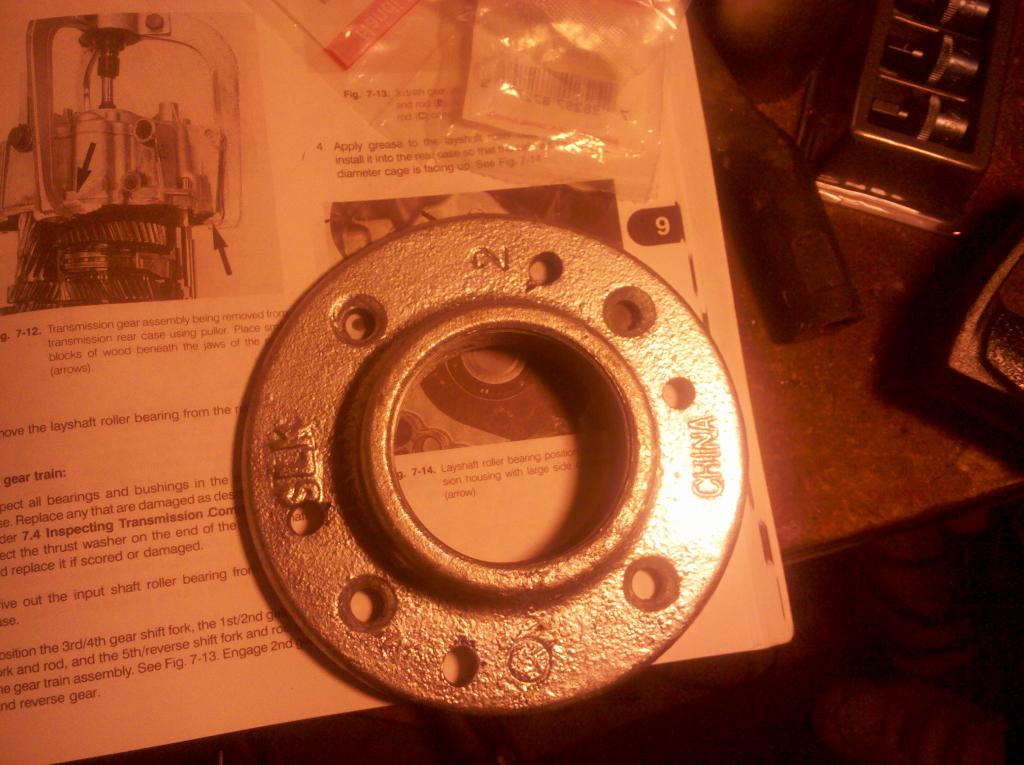I then bolted the flange to the transmission housing with bolts mentioned above.