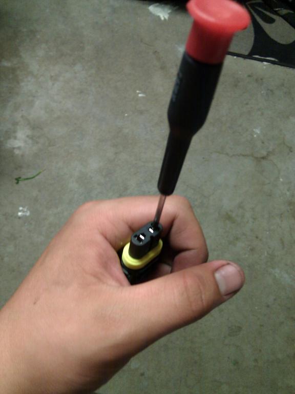 so what I did was grab a small Phillips head screw driver and jam it into the terminals so they can accept the rounded terminals in the fogs themselves