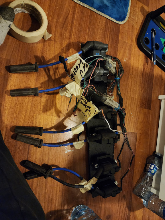 I'm using 2 of the factory v8 harness for the coils I cut out coil 7 and 8 off the original harness also got the pig tails connected together via colors and firing order