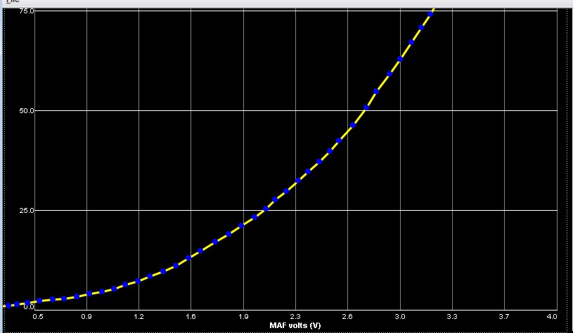 Your best bet would be to send it to a company to be flowed. That way they could provide you with the full transfer data. The actual measured flow curve is not as linear as yours. I would contact either Pro-m racing or EFI Systems/Abaco Racing. Both these companies produce aftermarket MAF's and have the equipment to properly flow test your meter. Having the meter actually flowed will make your tuning so much easier, simply copy and paste the data. Once you have that data you won't have to change it again, unless you change injector size.