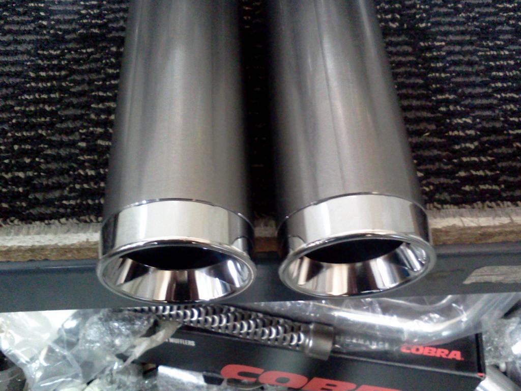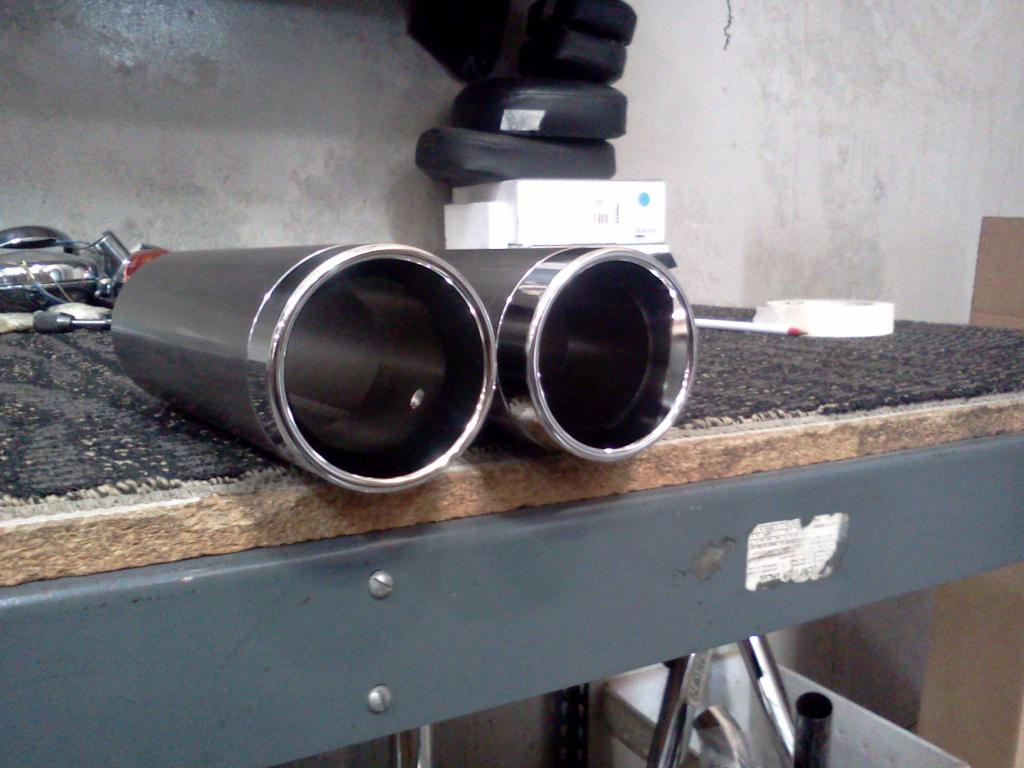 So I made a set of shorty resonators 10" x 3" duel domed ends w/2" louvered core x 8" louvered length, to mount right behind the bumper with a nice chrome 3"x 2.5" straight cut tip..