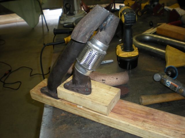 Jigged up the flanges before I cut the crappy welded o2 sensor off so I didn't have to test fit on the car, all on the bench instead
