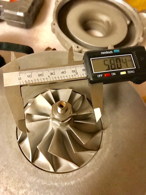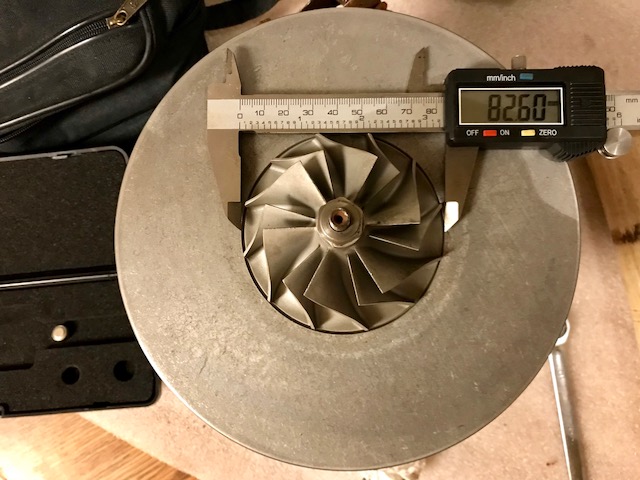 -Compressor: Exducer = 82mm, Inducer = 58mm, inlet = 60mm, exit cold (to intercooler) = 48mm