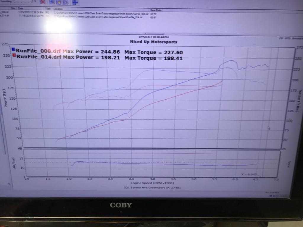 since my last dyno session I have upgraded to wasted spark and also gone from a manual boost controller to an electric one. I'll probably upgrade the clutch next, but wanted to get some other opinions on my dyno sheet. I was shooting for at least 300whp, so needless to say I was a bit disappointed with the 244whp.