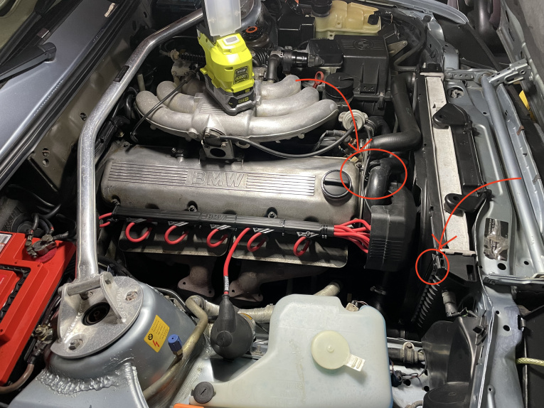 I was playing in my engine bay today and noticed some pieces missing or damaged. Does anyone knwo of the part numbers for the radiator hose clamp, alternator boots, and plugs for radiator fan shroud?