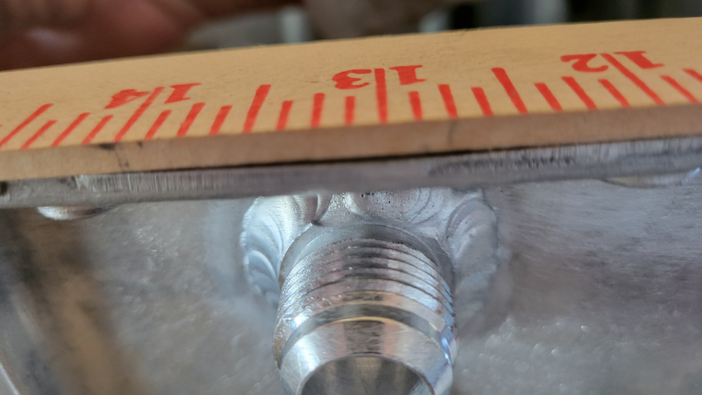 I just got a bung welded on my lower oil pan for my turbo drain line. The guy that welded it mentioned where he welded may have shrunk the metal a little and thus pulled the lip down a fraction. He said guys run 2 of the cork gaskets or put some extra RTV in that spot. I should be ok with some extra anaerobic sealer right?