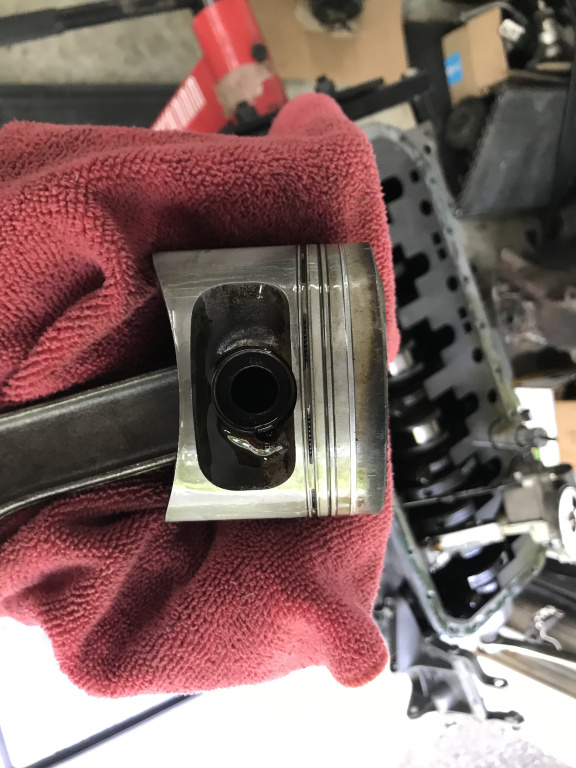 The cylinder walls were not marred up, but see some gap ring steaks, and what looks like compression ring scraping at the top of the cylinder. Also every single ring was frozen into every single piston.