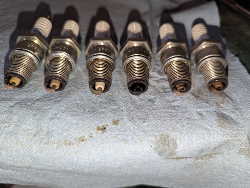 Here's a better picture of the cross hatching as is now... also a pic of the plugs and how bad that 1 was... and a pic of the valve I suspected but am questioning whether my test was valid. That one plug may have indicated a stuck or leaking injector I guess... that may have not let the rings seat properly washing that cylinder down so I will test that also.
