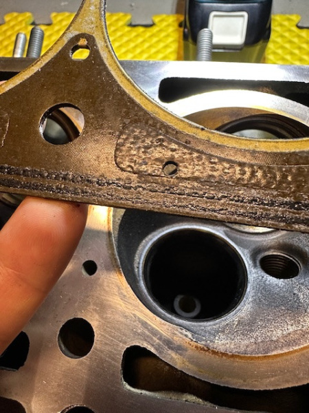 Obviously the pressure test should show what is happening. But based on the head imperfection location, I suspect that I could have had just coolant leak from HG into the nearest head bolt hole. Which sipped some coolant under the valve cover. I actually sort of reused HG twice: I swapped the cam mid build and had to loosen head bolts a little to get the cam out. Was thinking that it would be ok before HG was heat cycled, which was fine as far as the combustion sealing was.