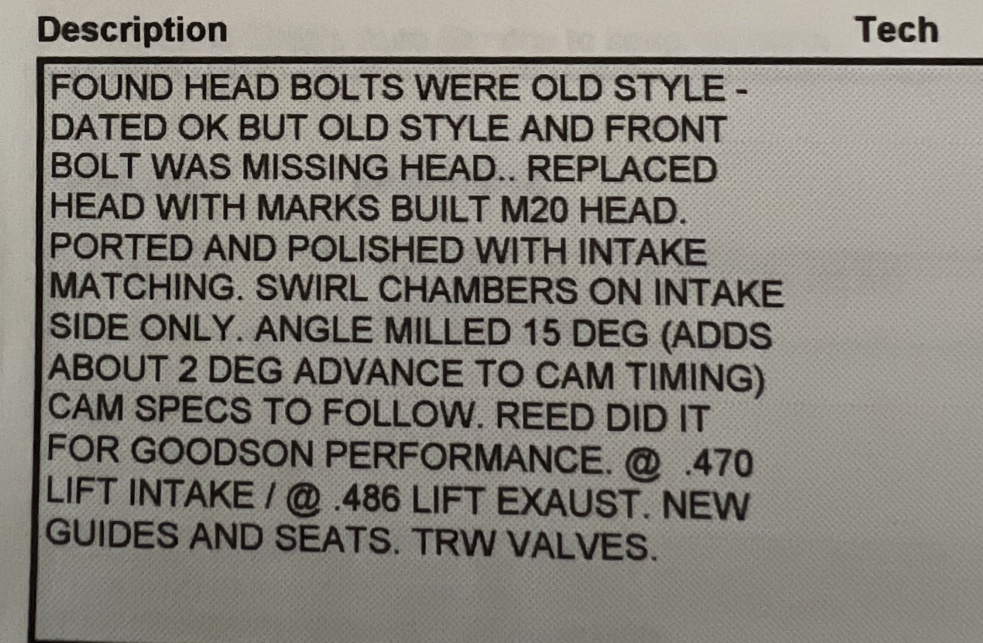 Dug up the original invoice on the head/cam work from the previous owner and here's what I'm working with: