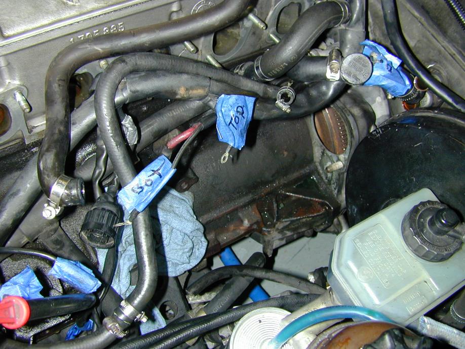 Should be a piece of cake to put back together. Just have to wait on the new thermostat housing. The old one was corroded and was leaking a bit.