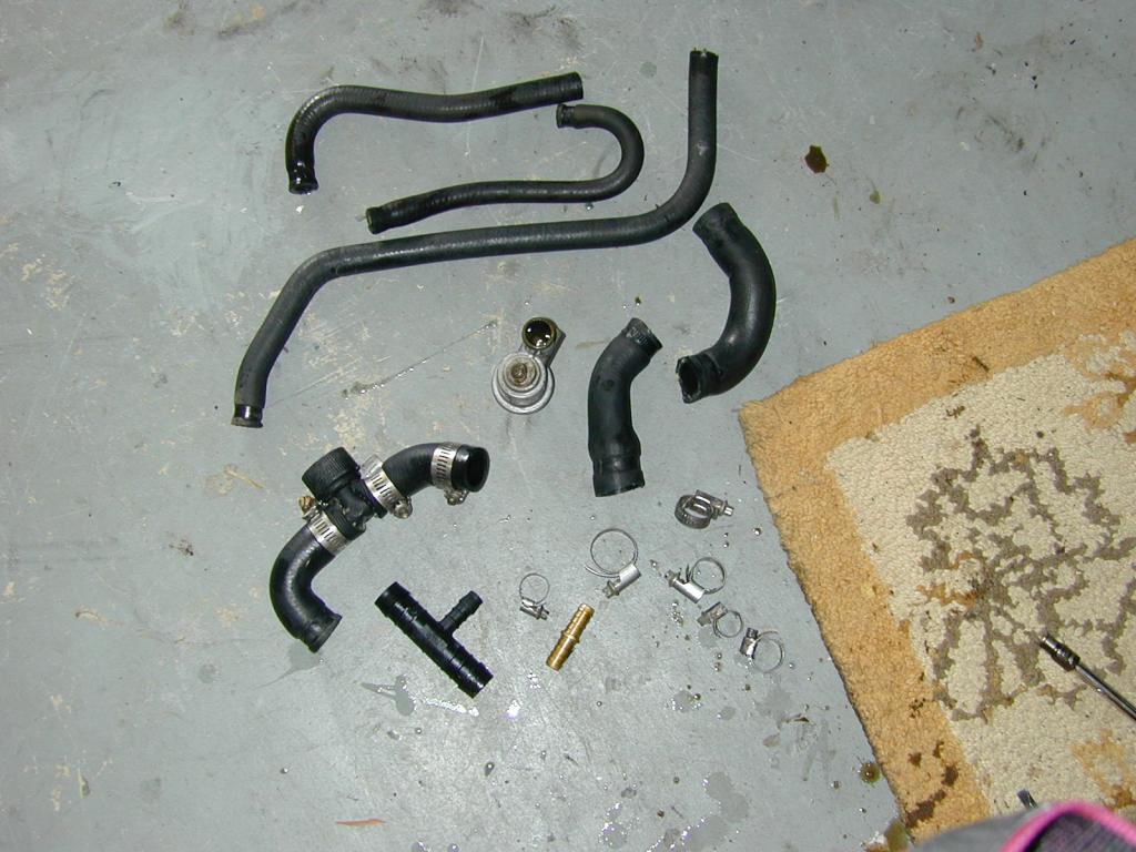 the plumbing is ridiculous. Can I just go from the block to the heater core and from the heater core into the big "T" pipe? And elimnate that thermostat and prestone connector.