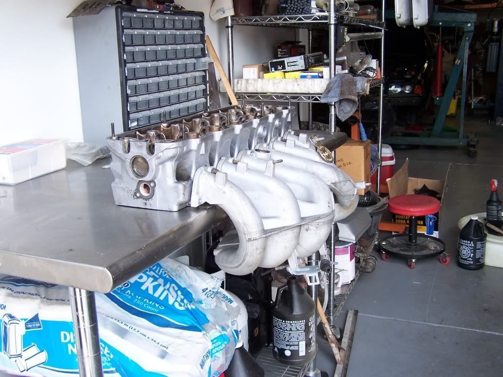 While figuring out routing and secondary length, my business partner (excellent head porter, engine builder, tuner) was playing with the head we had sitting on the cart while discussing tuning pulses, went to the bathroom and came back and saw this...