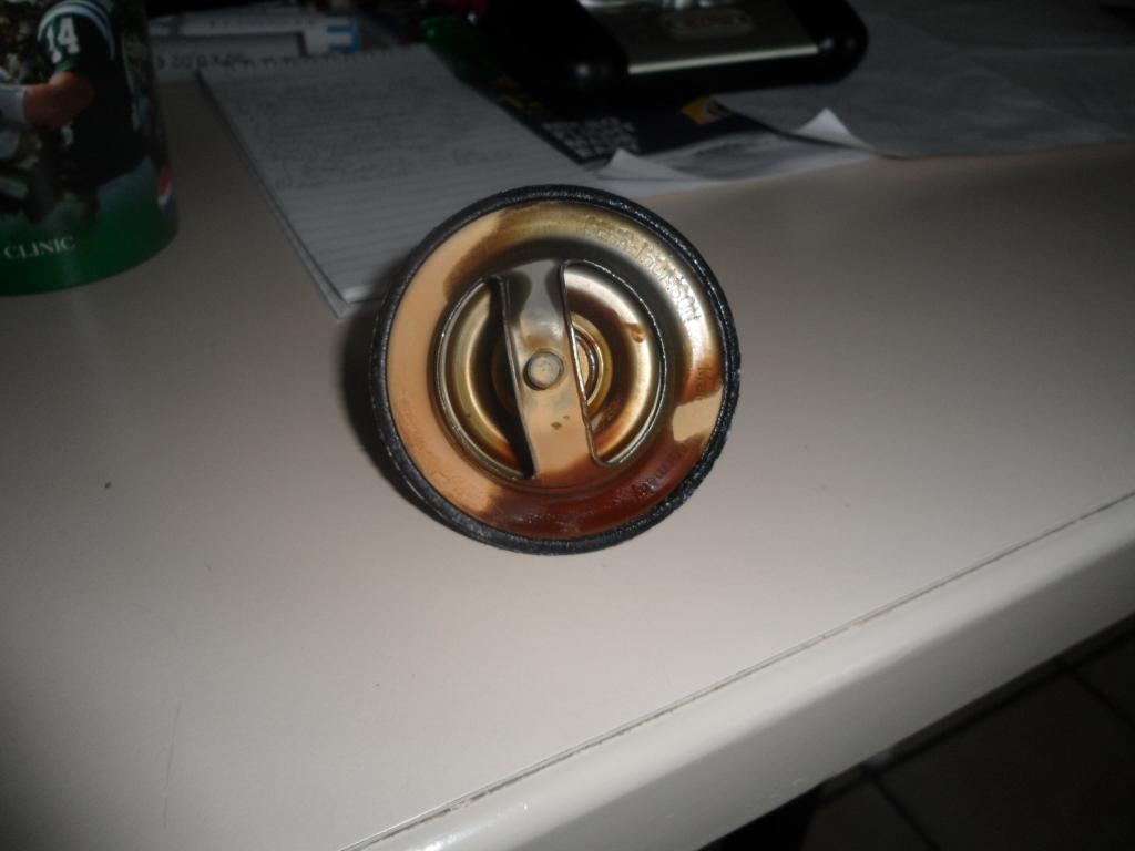 So I've been doing the routine maintenance on my car and have fixed a number of little things. I changed out the coolant to the BMW type with distilled water as the old coolant was either VERY old Dexcool or extremely ancient regular stuff as it was a sewage water orangey-brown. I flushed the system and bleed it as well. Driving around it usually sits at around the 1/2 mark to about a 1/4 below half. Occasionally if I am sitting it will go maybe a hair past the 1/2 mark, but always comes down when I start moving again.Today when I got home and was idling in the garage for a min the temp gauge started creeping up and got to the 3/4 mark. I figured there was still air in the so I bled it again, but there was straight coolant coming out. I had a new T-stat to put in anyway, so I broke it apart and changed it. I found some silicate deposits in the T-stat housing and the T-stat itself looked burnt( pics attached). What could cause a T-stat to become burned looking that? Should I be worried? I'll see how she does driving to work today and post up later, but any advice would be greatly appreciated...