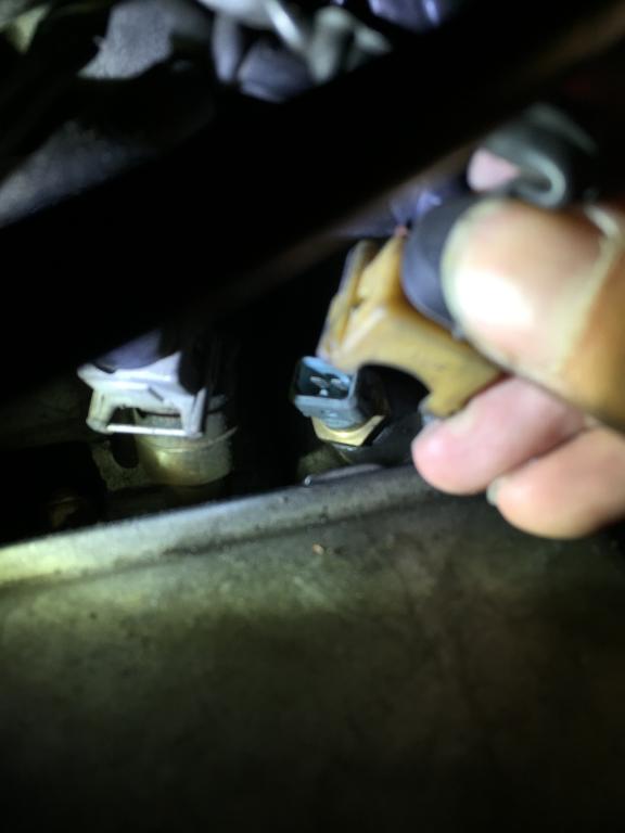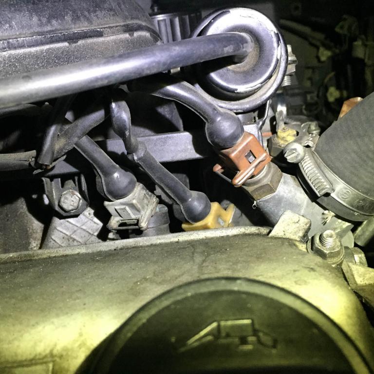 In one of the pictures you will see the coolant temperature sensor that is unplugged. Well, I can't seem to find the wiring to it and in addition to that, it has a 325e yellow sensor on it as well(????).
