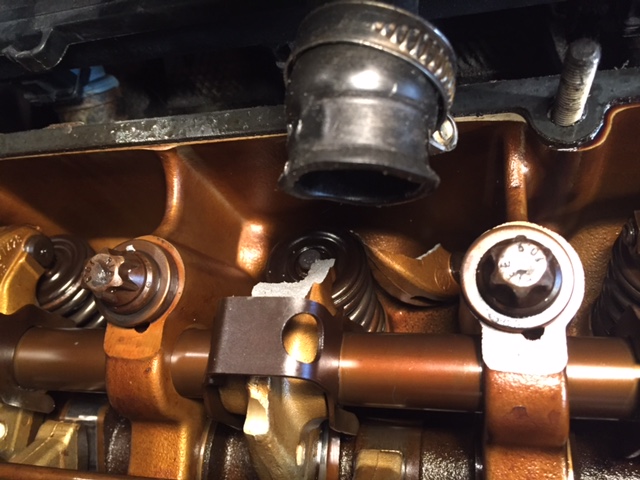 I pulled the valve cover off, and discover #5 intake valve rocker is broken, as well as section of head where rocker shaft passes through. (Pictures attached). I wasn't surprised to see a broken rocker, but was less than thrilled to discover damage to the head itself.