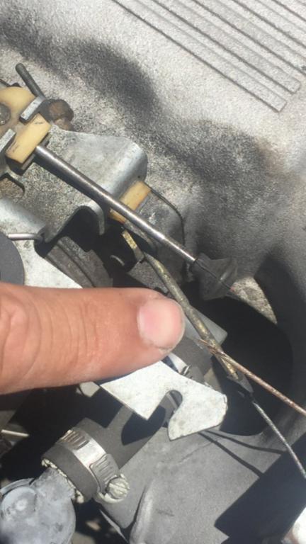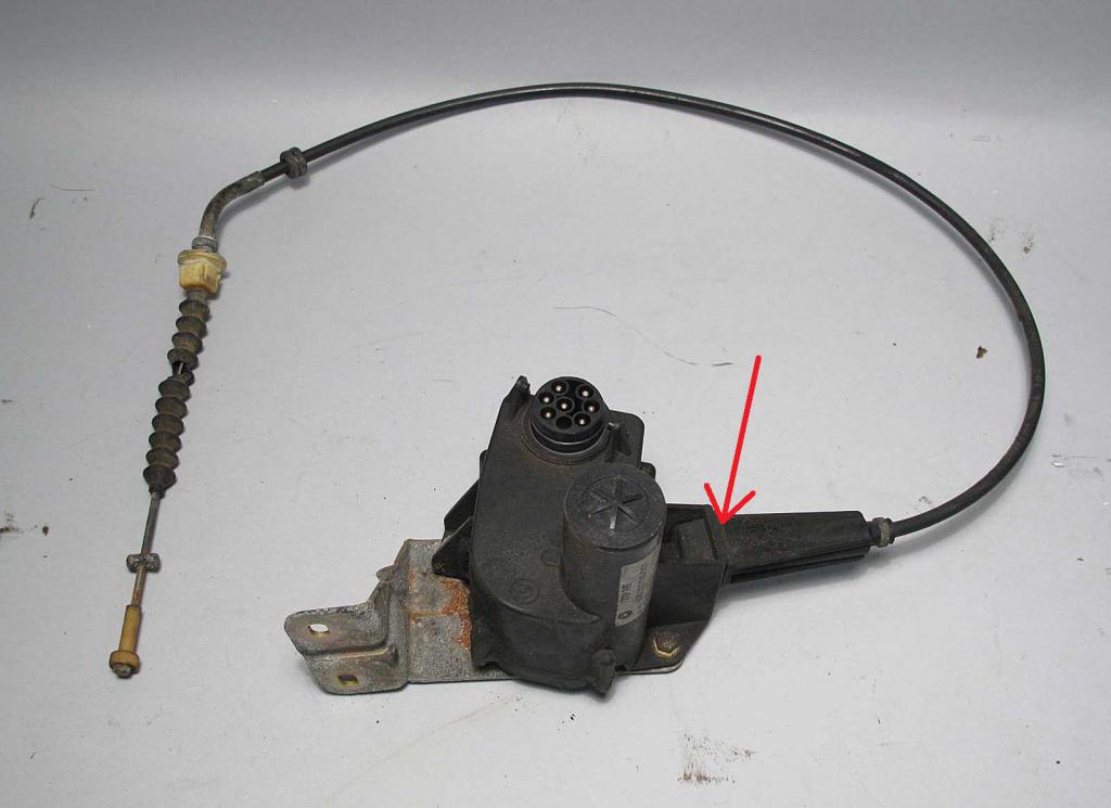 If it's the Bowden cable push the tab at the red arrow and pill the cable end out. It should pull out the tape-like actuation part that the end of the Bowden connects to. Disconnect the old end and connect the new one (this should be self explanatory by looking at it).