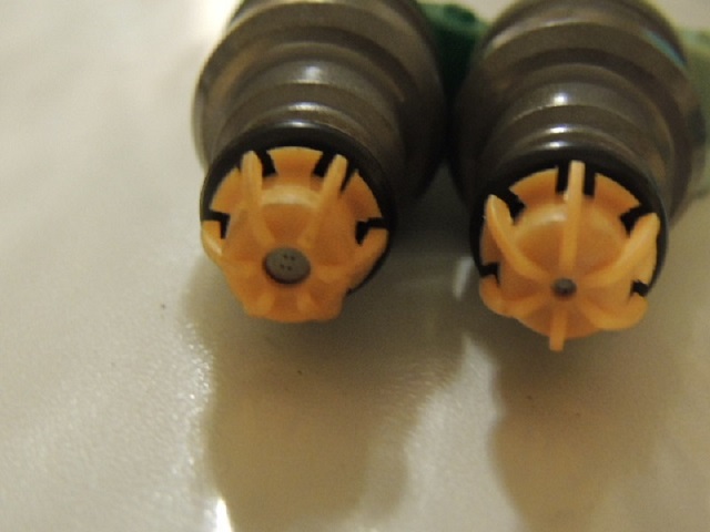 I purchased 6 rebuilt M50 green top injectors for the 4 pintle upgrade and when I received them 4 were a light green and 2 were a darker green. I assume this doesn't matter but, three of the six have a smaller hole in the yellow "cap" than the other three. Does this matter? I have confirmed that all 6 have the 4-hole pintles.